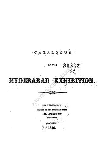 Madras Exhibition of 1855: Catalogue Raisonne of the Thirty Classes into which the Articles in Exibition are divided with an Index of the subjects comprised in each Class and of the Names of Exhibitors, complied for the use of the Jurors