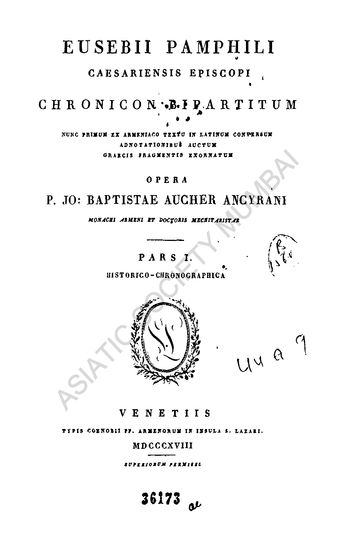 Eusebii Pamphili Caesariensis Episcopi Charnicon Bipartitium, Part I- Historico-Chronographica