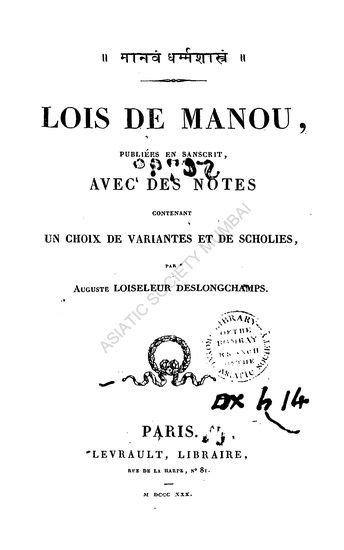 Manava-Dharma-Sastra, Lois de Manou