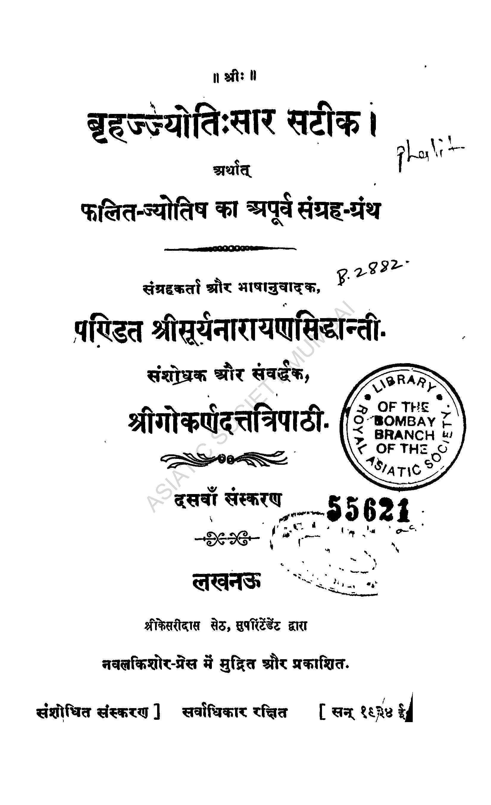 Brihajyotisara Satika Arthat Phalit Jyotishaka Apurva S ...