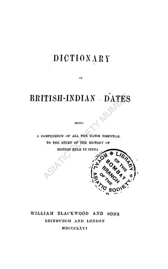 Dictionary of British-Indian Dates: Being a Compendium ...