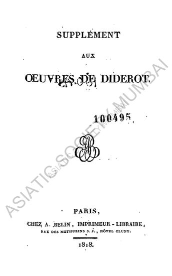 Supplement aux Oeuvres de Diderot