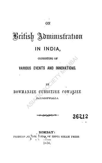 A Statistical Account of the Town & Island of Bombay in 3 Vol, Vol II