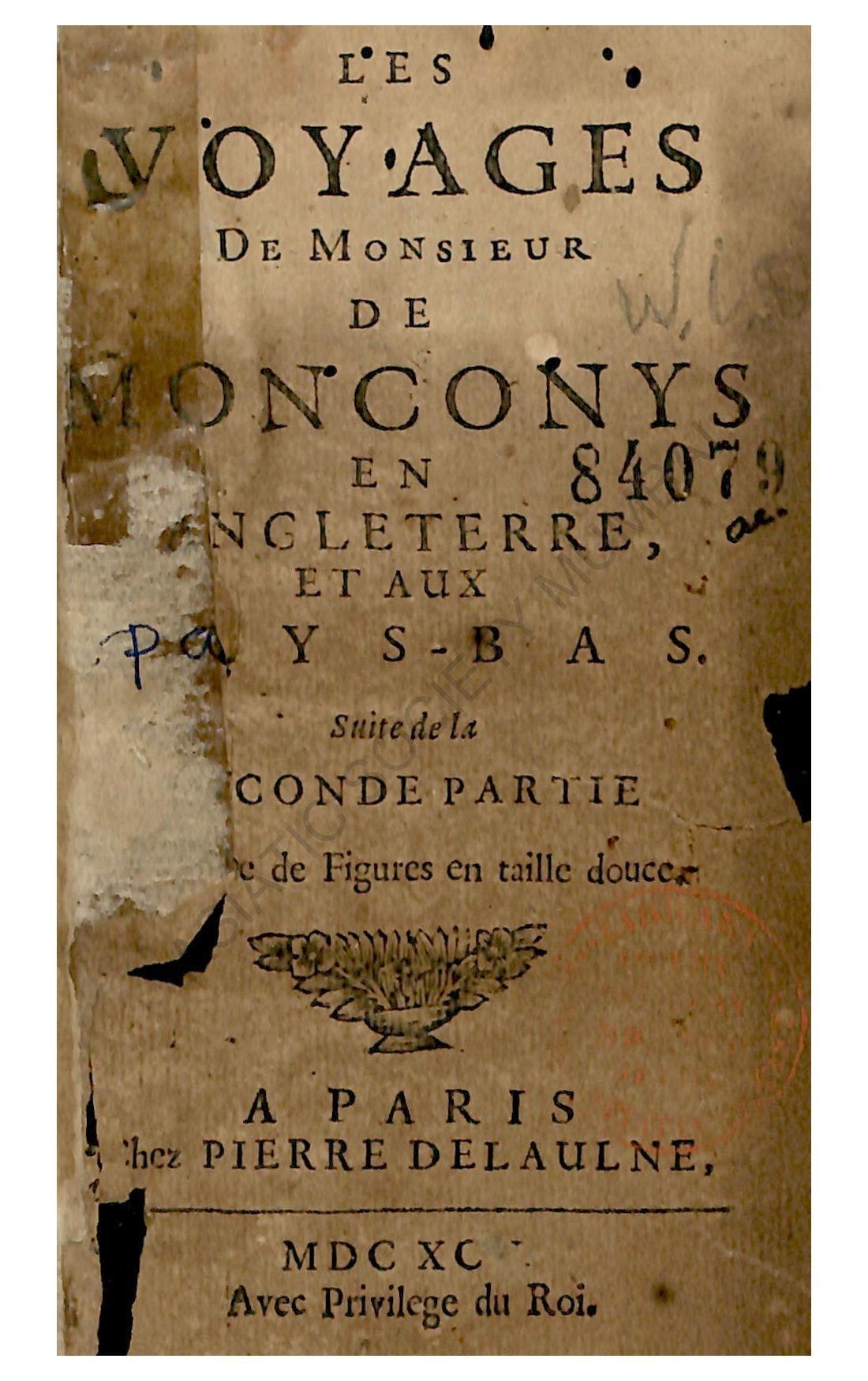 Les Voyages de Monsieur de Monconys en Angleterre et aux Pays-Bas, Part II.
