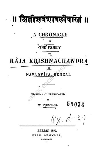 Kshitishavanshavali Charitam: A Chronicle of the Family of Raja Krishnachandra of Navadipa Bengal