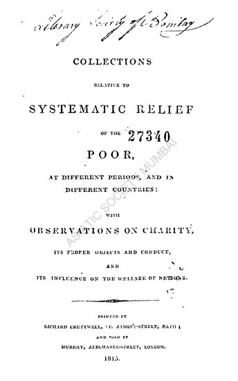 Collections Relative to Systematic Relief of the Poor, at different Periods and in different Countries