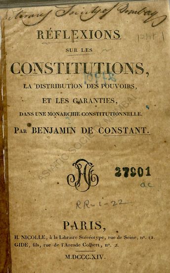 Reflexions sur les Constitutions, la Distribution des Pouvoir set les Garanties Dans une Monarchie Constitutionnelle