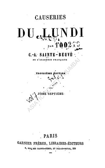 Causeries du Lundi, Vol. VII