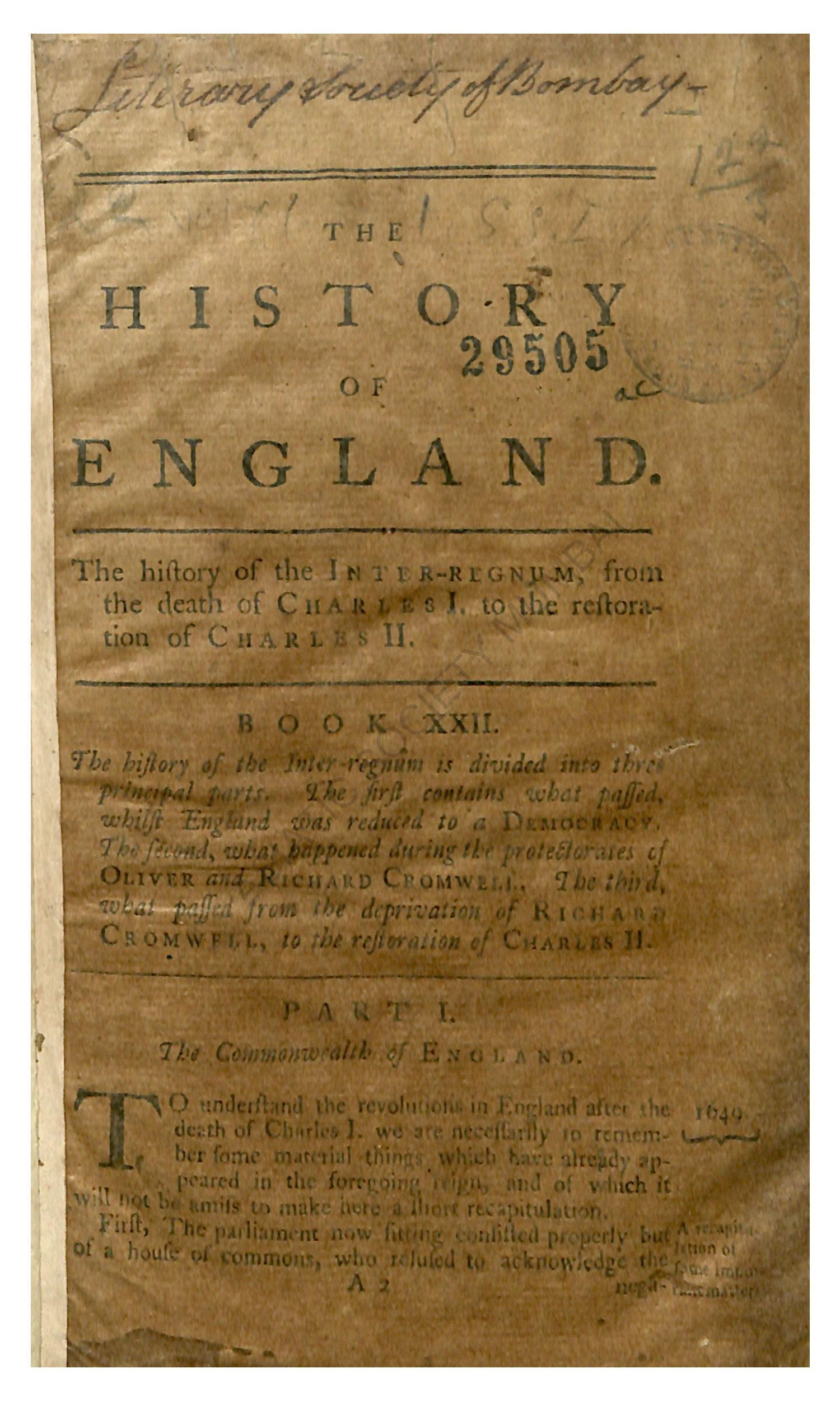 The History of England; illustrated with Maps, Genealogical, Tables and the Heads and Monuments of the Kings, translated from French, 4th ed., corrected, in Twenty-One Volumes, Vol. V