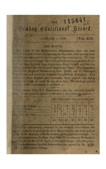 Bomaby Educational Record 1878.Vol.XIV