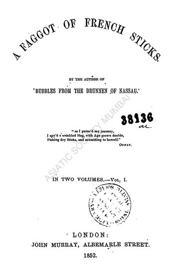 A Faggot of French Sticks, in Two Volumes, Vol. I