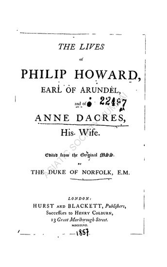 The Lives of Philip Howard, Earl of Arundel and of Anne Dacres, his wife