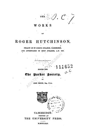 The Works of Roger Hutchinson; the First Annual Report for the Year 1841 of the Parker Society