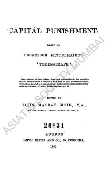 Capital Punishment based on Professor Mittermaire's 'Todesstrafe'