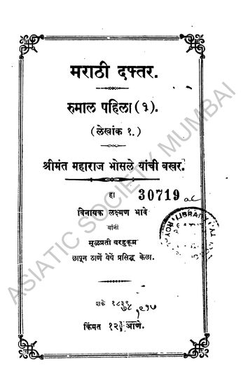 Marathi Dafter, Vol. I , Part I- Shrimant Maharaj Bhosa ...