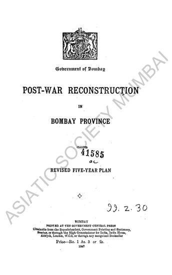 Post-War Reconstruction in Bombay Province; Revised Five-Year Plan