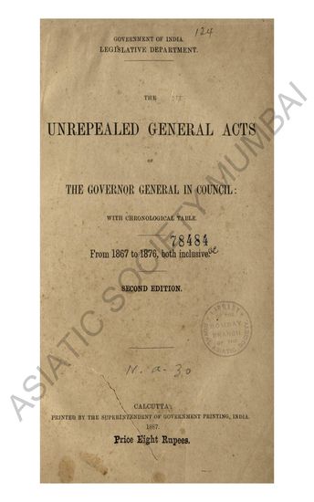 The Unrepealed General Acts of the Governor General in Council; from 1867 to 1876, both inclusive, 2nd ed.