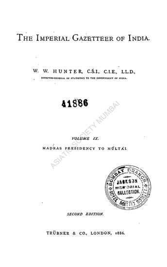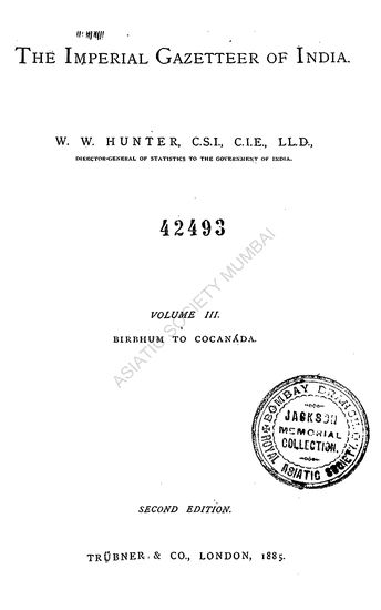 The Imperial Gazetteer of India comp by w w Hunter in 1 ...