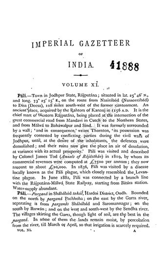 Imperial Gazetteer of India Comp by w w Hunter in 14 Vols, 2nd Ed, Vol. XI