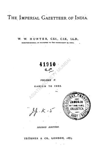 The Imperial Gazetteer of India comp by w w Hunter in 14 Vols, 2nd Ed, Vol. V