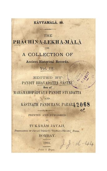The Prachina - Lekha - Mala or a Collection of Ancient Historical Records by Sivadatta & Kasinath Pandurang Parab, in 3 Vols., Vol. III
