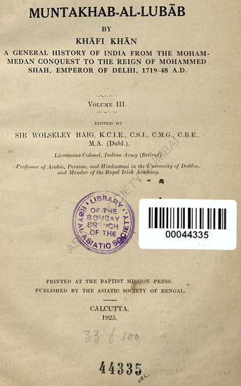 Khan, Khafi; Ahmed, Kabir Al-Din (Ed); Haig, Thomas Wolseley (Ed)