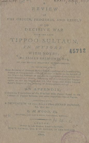 A Review of the Origin, Progress and Result of the Decisive War with the Late Tippoo Sultan in Mysore