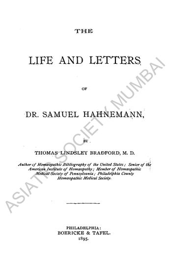 The Life and Letters of Dr. Samuel Hahnemann