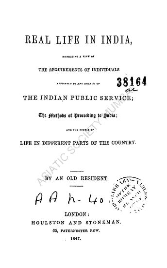 Real life in India: Embracing a View of the Requirements of Individuals Appointed to Any Branch of the Indian Public Service: The Methods of Proceeding to India, and the Course of life in Different Parts of the Country
