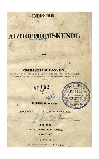 Indische Alterthumskunde in 4 Vols., Vol. I