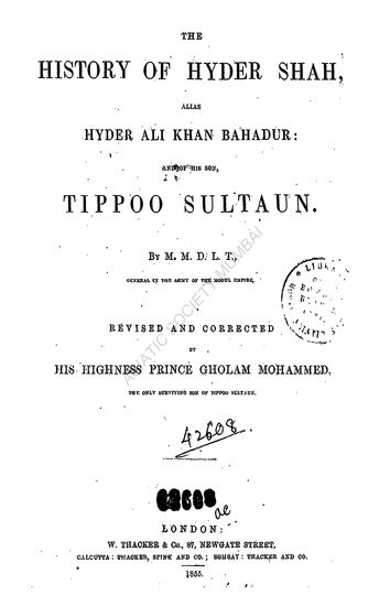 The History of Hyder Shah: Alias Hyder Ali Khan Bahadur ...
