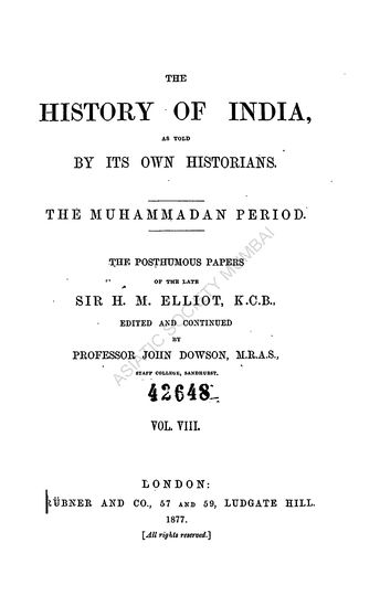 The History of India as Told by its Own Historians. The Muhammadan Period, in 8 vols., Vol. VIII