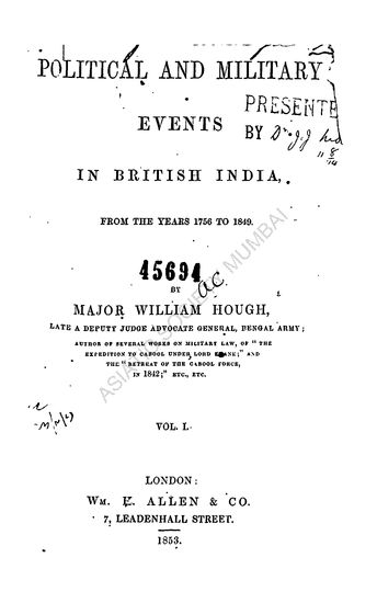 Political and Military Events in British India from the Years 1756 to 1849, Vol. I