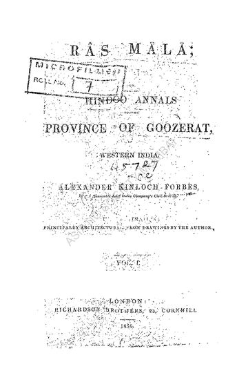 Ras Mala: Hindoo Annals of the Provinces of Goozerat in Western India, Vol. I