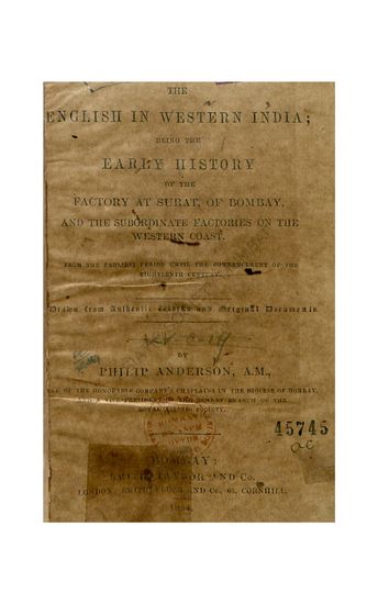 The English in Western India Being the Early History of the Factory at Surat, of Bombay and the Subordinate Factories on the Western Coast