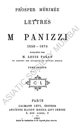 Lettres M. Panizzi, 1850-1870, Vol. II
