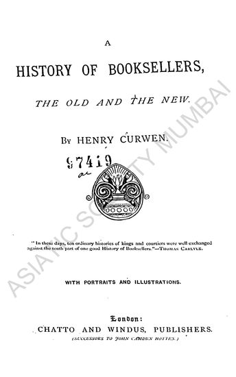 A History of Booksellers, the Old and the New