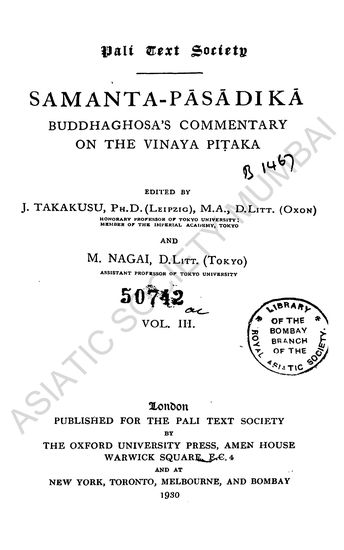 Buddhaghosa; Takakusu, J. (Ed.); Pali Text Society