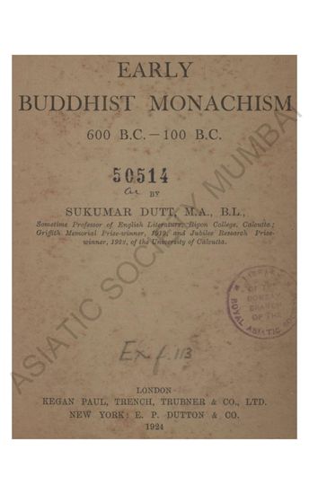 Early Buddhist Monachism, 600 B.C. - 100 B.C.