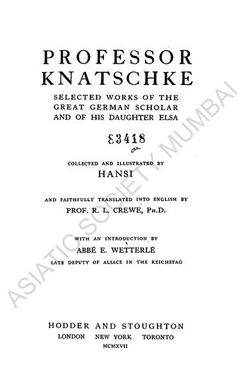 Professor Knatschke: Selected Works of the Great German Scholar and of his Daughter Elsa