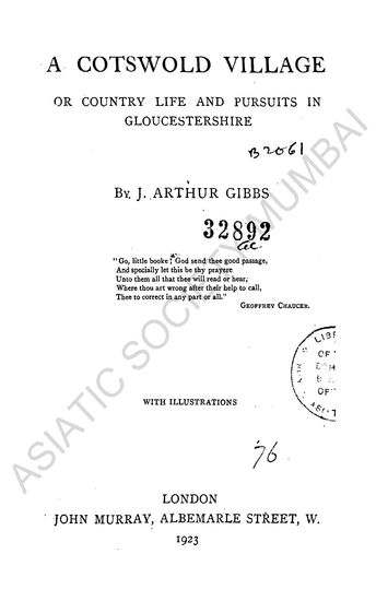 A Cotswold Village; or, Country Life and Pursuits in Gl ...