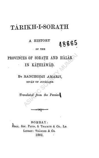 Tarikh-I-Sorath: A History of the Provinces of Sorath and Halar in Kathiawad