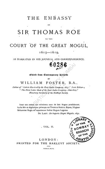 The Embassy of Sir Thomas Roe to the Court of the Great Mogul 1615-1619, in 2 Vols., Vol. II
