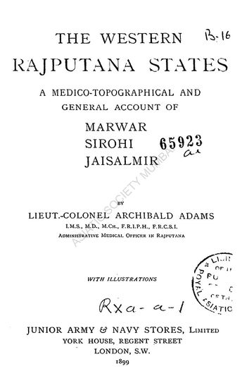 The Western Rajputana States: A Medico-Topographical and General Account of Marwar Sirohi Jaisalmir