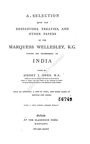 A. Selection From the Dispatches Treaties and Other Papers of the Marquess Wellesley, K.G. During his Government of India.