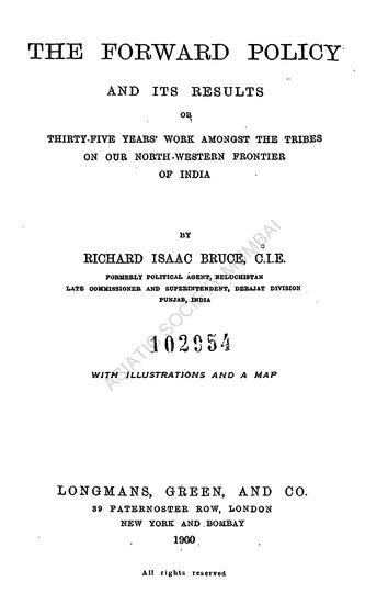 The Forward Policy and its Results or Thirty-Five Year's Work Amongst the Tribes on Our North-Western Frontier of India