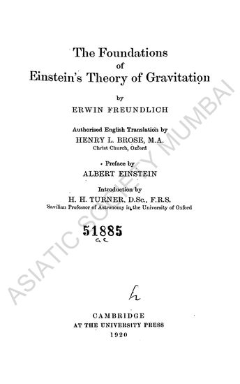 Freundlich, Erwin; Brose, Henry L. (Tr.); Einstei et al.