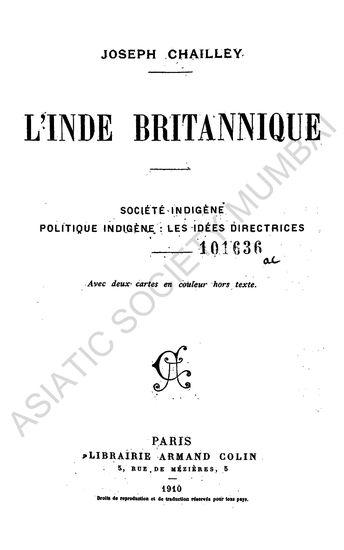 L'Inde Britannique; Societe-Indigene, Politique Indigene; les Idees Directrices