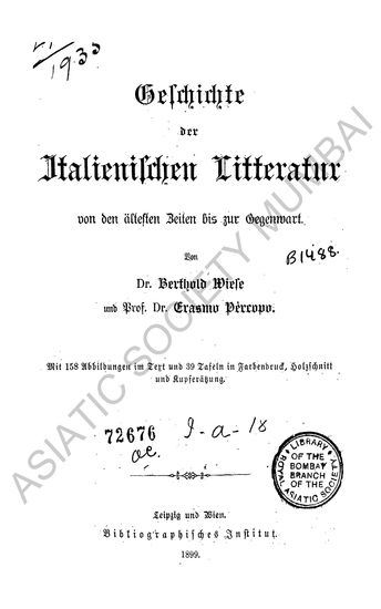 Geschichte der Italienischen Litteratur, von den altesten zeiten bis zur Gegenwart