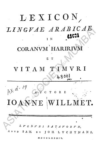Lexicon Linguae Arabicae in Coranum Haririum et Vitam Timuri